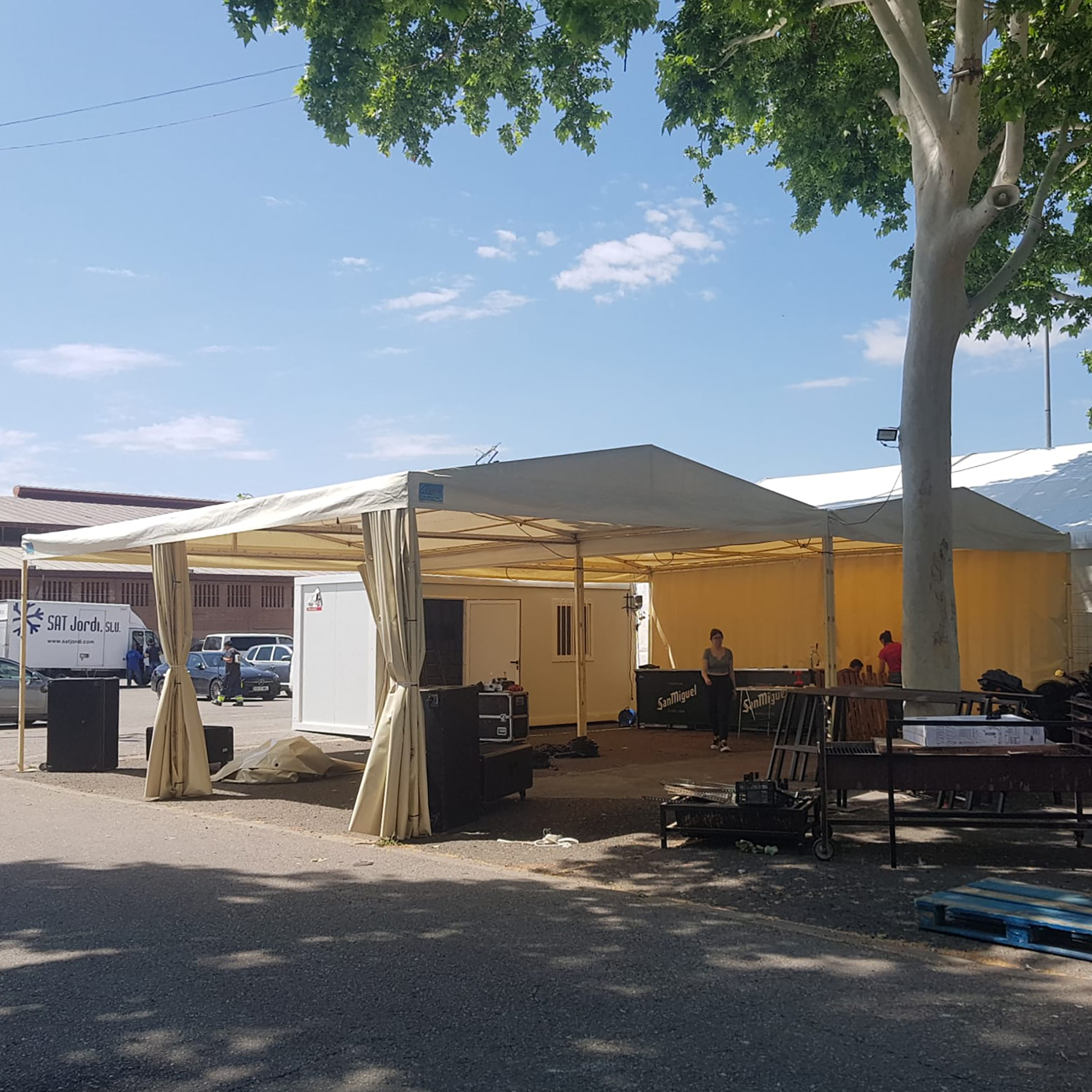 Transportamos y montamos los diferentes elementos que forman parte de las peñas (carpas, toldos, vallas personalizadas, decoración, pérgolas…). Asimismo, también nos encargamos del posterior desmontaje, transporte, almacenamiento y pupilaje de estos elementos. Un esfuerzo logístico y de personal único por su envergadura.